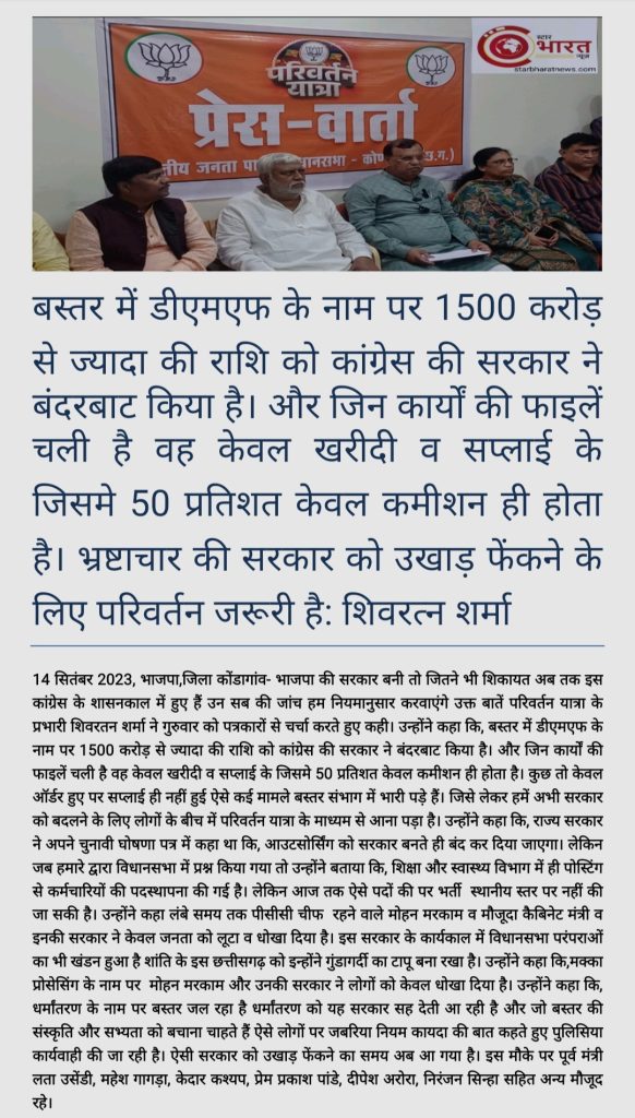 कोण्डागांव, 29 सितम्बर 2023/ जनपद पंचायत कोण्डागांव के सभागार में विकासखण्ड स्तरीय टीबी मुक्त पंचायत पर एक दिवसीय प्रशिक्षण एवं कार्यशाला आयोजित हुई। यह प्रशिक्षण मुख्य कार्यपालन अधिकारी, जिला क्षय उन्मूलन अधिकारी की उपस्थित में सम्पन्न हुआ। प्रशिक्षण में उपस्थित सरपंच एवं सचिवों को मुख्य कार्यपालन अधिकारी एवं जिला क्षय उन्मूलन अधिकारी ने कहा कि…