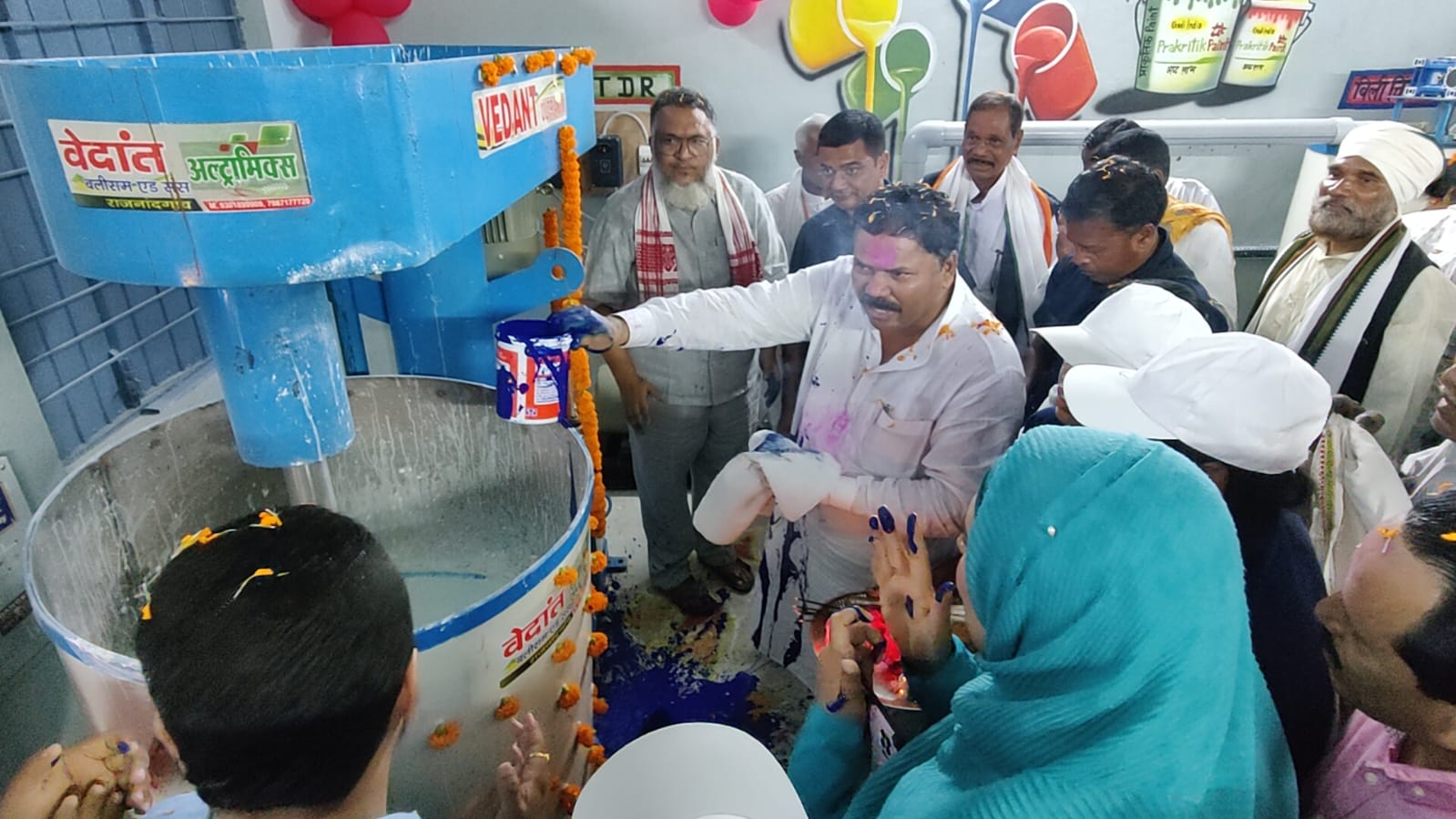 कोण्डागांव, 26 सितम्बर 2023/ केशकाल विकासखंड अंतर्गत ग्राम पंचायत अड़ेगा में छत्तीसगढ़ सरकार की महत्वाकांक्षी योजना के तहत निर्मित महात्मा गांधी ग्रामीण औद्योगिक पार्क में कोण्डागांव जिले के ग्रामीण अंचल में निर्मित पहले प्राकृतिक गोबर पेंट इकाई का शुभारंभ किया गया। इस कार्यक्रम में विधानसभा उपाध्यक्ष एवं विधायक केशकाल संतराम नेताम एवं जिला पंचायत अध्यक्ष देवचंद मातलाम ने स्थानीय जनप्रतिनिधियों तथा ग्रामीणों के साथ फीता काट कर प्राकृतिक गोबर पेंट यूनिट का उद्घाटन किया। इसके साथ ही गोबर पेंट निर्माण कर रही महिला समूह को 01 लाख रुपए का चेक प्रदान कर उनका उत्साहवर्धन भी किया गया। इस दौरान विधानसभा उपाध्यक्ष एवं विधायक केशकाल संतराम नेताम ने कहा कि मुख्यमंत्री भूपेश बघेल की मंशा के अनुरूप ग्रामीण क्षेत्रों में निवासरत महिलाओं को आर्थिक रूप से सक्षम व आत्मनिर्भर बनाने के उद्देश्य से केशकाल विकासखंड के ग्राम अड़ेगा में ग्रामीण अंचल में बनने वाले प्रथम गोबर पेंट इकाई की शुरुआत हुई है। निश्चित रूप से समूह की महिलाओं को गोबर पेंट निर्माण एवं बिक्री से भरपूर लाभ मिलेगा साथ ही इससे होने वाले आय से महिलाएं आर्थिक रूप से मजबूत बनेंगी। इसके अतिरिक्त उन्होंने अड़ेंगा में गोंडवाना समाज भवन का भूमिपूजन, देवगुड़ी भवन का लोकार्पण, कंवर समाज भवन का लोकार्पण तथा प्राथमिक एवं माध्यमिक शाला भवन में प्रोजेक्टर का शुभारंभ भी किया गया। इस अवसर पर जिला पंचायत अध्यक्ष देवचंद मातलाम ने बताया कि शासन द्वारा हर वर्ग के विकास और उत्थान के लिए अनेक जनकल्याणकारी कार्य किये गये हैं। इस सम्बंध में जनपन पंचायत सीईओ रामेश्वर महापात्र ने बताया कि महात्मा गांधी ग्रामीण औद्योगिक पार्क में कुल 04 महिला समूह कार्यरत हैं। प्रत्येक समूह में 10 महिलाओं को शामिल किया गया है। ये महिला समूह दोना पत्तल निर्माण, दाल प्रसंस्करण, बीसी सखी एवं गोबर पेंट निर्माण का कार्य कर के आर्थिक रूप से मजबूत हो रही हैं। इस कार्यक्रम में उर्दू अकादमी बोर्ड के सदस्य सगीर कुरैशी, जनपद उपाध्यक्ष गिरधारी सिन्हा, सरपंच सरीदा नाग, उपसरपंच प्रेम नेताम, सरपंचगण ओमप्रकाश माला, माहेश्वरी हिड़को, संगीता नेताम, जनपद सीईओ रामेश्वर महापात्र, रीपा नोडल अधिकारी कुंजलाल सिन्हा, बीपीएम हरीश मंडावी, नलिश अंचल, नीलोफर नबी समेत अन्य अधिकारी कर्मचारी एवं स्थानीय ग्रामीणजन मौजूद रहे।