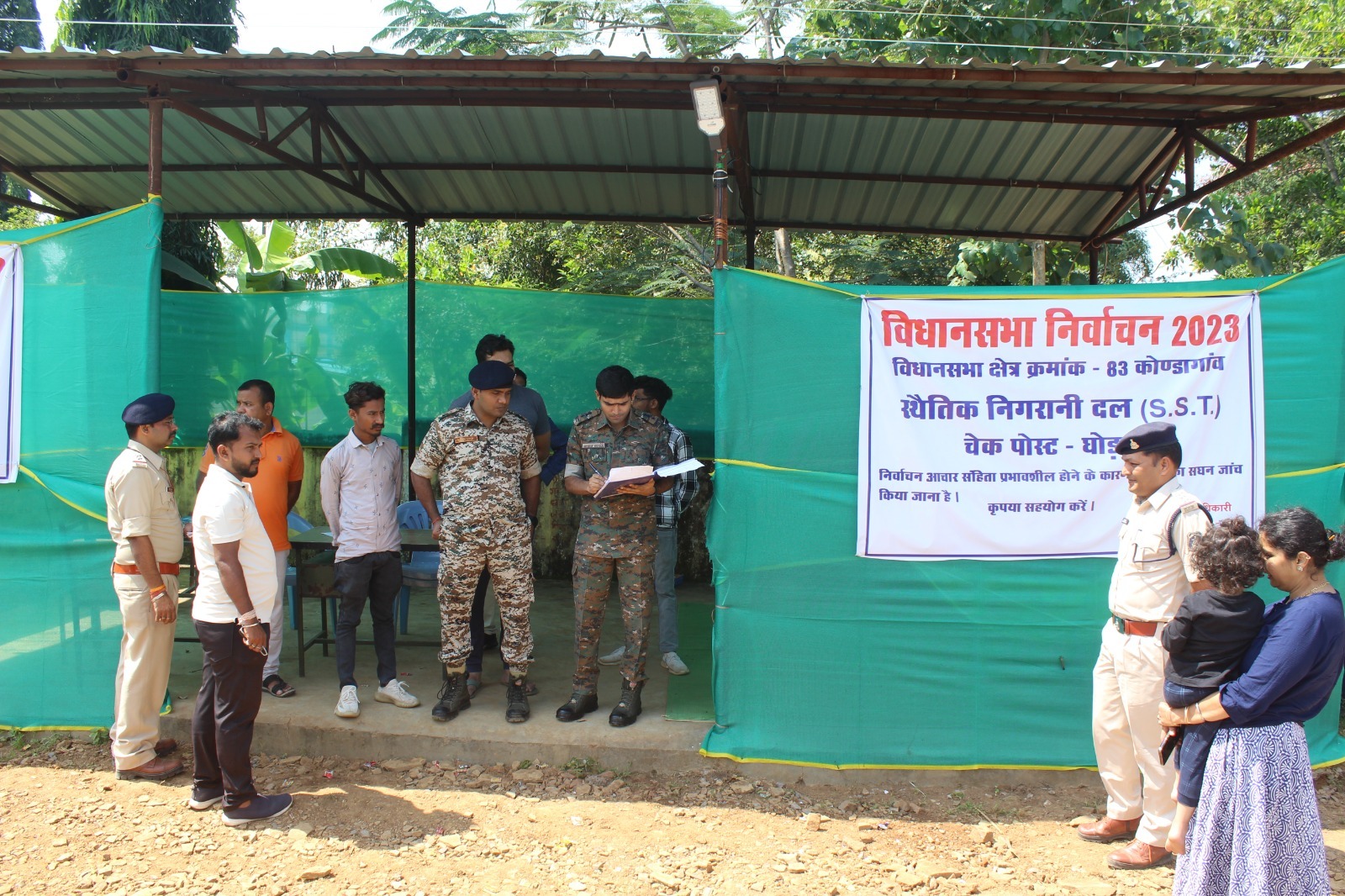 पुलिस अधीक्षक श्री येदुवेल्ली अक्षय कुमार भा0पु0से0 जिला कोण्डागांव के द्वारा दिनांक 12.10.2023 को आगामी विधान सभा चुनाव के मद्देनजर जिला कोण्डागांव में लगे कोंडागाँव , फरसगांव , माकड़ी का उड़नदस्ता दल एवं घोड़ागांव , एरला, हीरापुर, उरन्दाबेड़ा, एवं कोंडागाँव-नारायणपुर सीमा के स्थैतिक निगरानी टीम के चेक पोस्ट का निरीक्षण किया गया।निरीक्षण के दौरान पुलिस अधीक्षक महोदय के द्वारा एसएसटी टीम को सभी चार एवं दुपहिया पहिया वाहनो को बारिकी से चेक करने, मादक पदार्थ एवं किसी प्रकार के संदिग्ध वस्तु के मिलने पर की जाने वाली कार्यवाही करने एवं एफएसटी टीम को आचार संहिता के उल्लंघन एवं चुनाव से सम्बंधित प्राप्त होने वाली शिकायत के त्वरित निराकरण के लिए आवश्यक दिशा निर्देश दिया गया।निरीक्षण के दौरान अनुविभागीय पुलिस अधिकारी कोण्डागांव श्री निमितेश सिंह अनुविभागीय पुलिस अधिकारी फरसगांव श्री अनिल विश्वकर्मा एवं थाना प्रभारी कोण्डागांव, अनंतपुर, माकडी, फरसगांव उपस्थित थे।