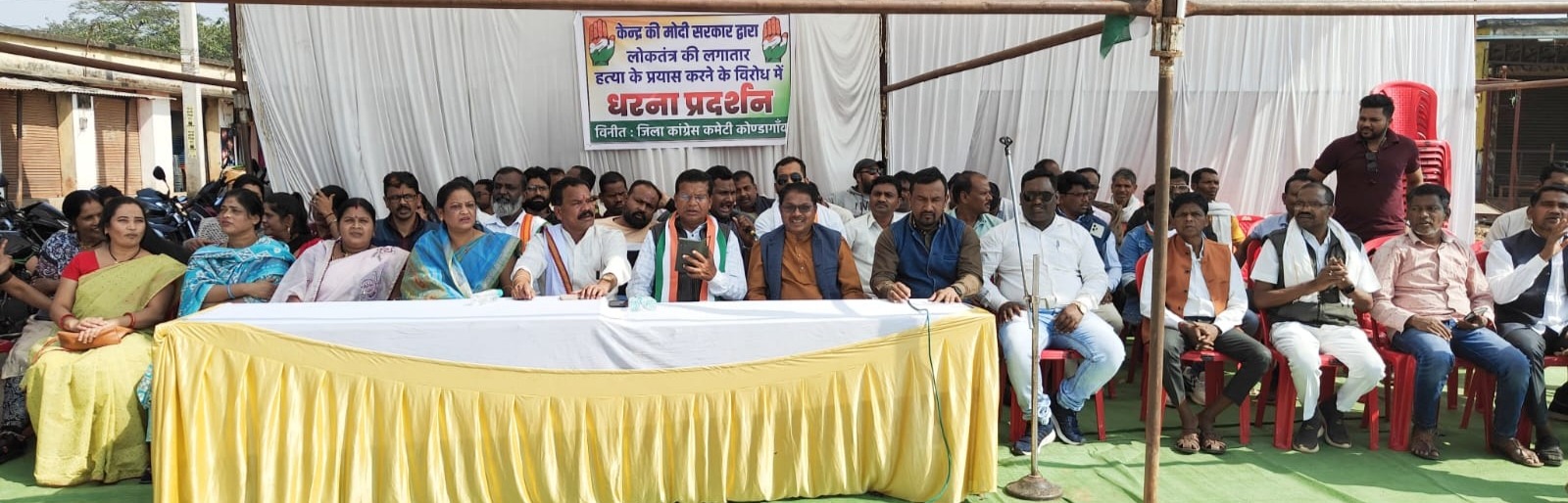 केंद्र की भाजपा सरकार द्वारा लोकतंत्र पे अभूतपूर्व हमला करते हुए सदन के दोनों सदनों लोकसभा एव राज्यसभा के विपक्ष के 142 से अधिक सांसदों को निलंबित कर दिया और लोकतंत्र के सिद्धांतों की हत्या करते हुए संसद के लोकतंत्र को खत्म करने का प्रयास किया है जिसके विरोध में इंडिया गठबंधन व अखिल भारतीय कांग्रेस कमेटी के आह्वान पे व छग प्रदेश कांग्रेस के निर्देशानुसार जिला कांग्रेस कमेटी कोंडागांव ने जिला मुख्यालय कोंडागांव में धरना प्रदर्शन कर विरोध प्रदर्शन किया इस अवसर पे पूर्व मंत्री मोहन मरकाम ने कहा कि केंद्र की मोदी सरकार विपक्ष के सवालों से डरी हुई है उनके नेताओ में भय व्याप्त है भाजपा के सांसद के अनुमोदन से जारी पास के माध्यम से कुछ लोग सदन के अंदर प्रवेश करते है और स्मोक स्प्रे का प्रयोग करते है तब अपनी ही पार्टी के सांसद से सवाल करने की बजाय विपक्षी सांसद जो की मोदी सरकार से गृह मंत्री अमित शाह से संसद की सुरक्षा को लेकर जवाब मांग रहे थे उन्हें सदन से निलंबित करवाकर अपनी तानाशाही रवैये का परिचय देते हुए लोकतंत्र की हत्या का प्रयास कर रही है लेकिन कांग्रेस पार्टी और कांग्रेस के कार्यकर्ता केंद्र की मोदी सरकार की लोकतंत्र की हत्या का प्रयास कभी सफल नही होने देगी और पुरजोर तरीके से मोदी सरकार की तानाशाही के खिलाफ लड़ेगी धरना प्रदर्शन में जिलाध्यक्ष झुमुकलाल दीवान, ,सासंद प्रतिनिधि कैलाश पोयाम,दसरथ नेताम,प्रदेश सदस्य बुधराम नेताम,जिला पंचायत उपाध्यक्ष भगवती पटेल,सदस्य रमिला मरकाम,नगरपालिका अध्यक्ष वर्षा यादव,जनपद अध्यक्ष शिवलाल मंडावी,उपाध्यक्ष मनोज सेठिया,प्रदेश सचिव सकुर खान,जिला महामंत्री गीतेश गांधी रितेश पटेल,शहर अध्यक्ष तरुण गोलछा,ब्लाक अध्यक्ष सुखराम पोयाम,महिला कांग्रेस प्रदेश सचिब तब्बसुम बानो,शहर अध्यक्ष हेमा देवांगन,ब्रिज सोढ़ी,योगेंद्र राठौर,अनुराग पटेल,संजय करन,नन्दू दीवान,सुकमु कोर्राम,सानू नेताम,लालसाय नेताम,पार्षद ललिता नेताम,इरशाद खान,योगेंद्र पोयाम,कामदेव कोर्राम,मीना साहू,राजेन्द्र देवांगन,नरेंद्र देवांगन,गन्नू पोयाम,सन्नी , प्रीति भदौरिया,पार्वती साहू,नीलू देवांगन,लखन पटेल,परमेन्द्र देवांगन सहित भारी संख्या में कार्यकर्ता पदाधिकारी उपस्थित रहे ।